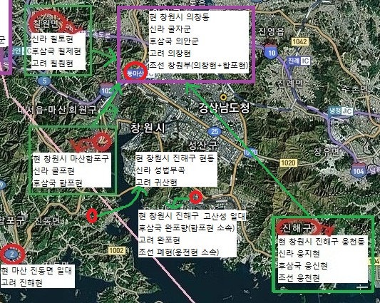 참고서적 : [삼국사기 지리지], [고려사 지리지],[세종실록지리지], [신증동국여지승람], [동사강목 지리고] 등