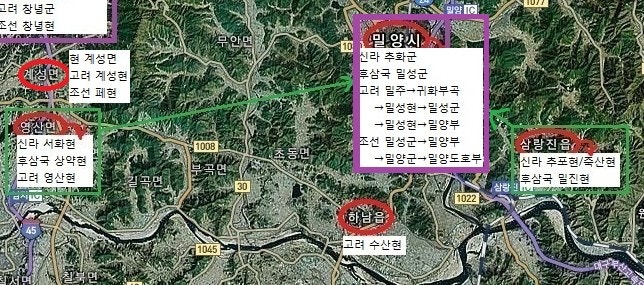 밀성군+2현(상약현+밀진현)+ 계성현,수산현