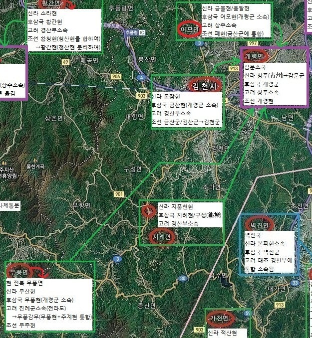 개령군+4현(어모현/금산현/지례현/무풍현)