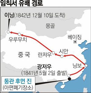 러시아에 대해 임칙서가 모은 자료는, 동료인 위원에게 전해졌습니다. 위원은 이를 바탕으로 해국도지를 썼습니다. 훗날 임칙서가 운귀총독(雲貴總督)으로 부임할 당시, 운남에서 죽은 부인의 영구를 세 아들과 함께 고향으로 가지고 갈때, 배 안에서 그는 다름 아닌 좌종당을 만났습니다. 좌종당은 (이 시점에서 보면 미래의 일인) 태평천국의 일을 진압한 사람 중에 한명이자, 양무파의 일원입니다.