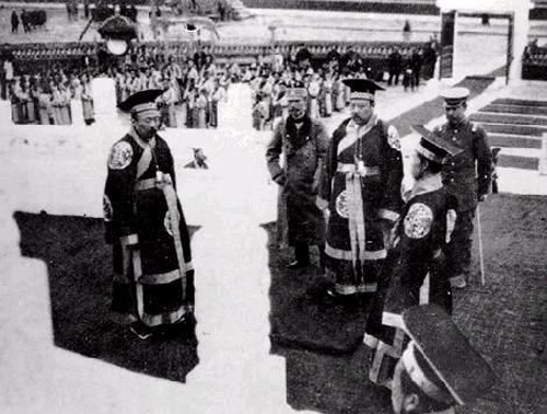 이쯤되자 주변의 측근들은 한발 앞서나가 원세개에게 황제로 즉위하라고 수시로 군주제를 들먹였고, 게중에 가장 열성적인 것은 아들 원극정이었습니다. 처음에는 그럴 수 없다며 발을 빼던 원세개는, 이후에는 내심 찬동하는 듯한 말을 하더니 종내에 이르러선 "너희들이 알아서 해라." 고 하였습니다.