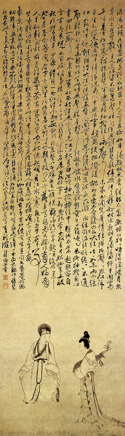 시의 2장에 이르러 비파타는 여자의 이야기를 독백으로 그리는데, 여기서 변전무상(變轉無常)한 인생의 양상을 찾아 볼 수 있습니다. 한때 화려한 서울에서 미모와 슬기로 뭇사람의 이목을 끌었던 몸이 지금은 상인의 아내가 되어, 강상(江上)의 배에서 외로이 남편을 기다린다는, 비파를 탄주하는 여인의 술회에 문화의 그림자도 찾아볼 수 없는 변경의 땅에서 잿빛의 나날을 보내는 자신의 처지가 생각되어 누를 길 없는 한탄을 슬픈 억양으로 노래하는 것입니다.